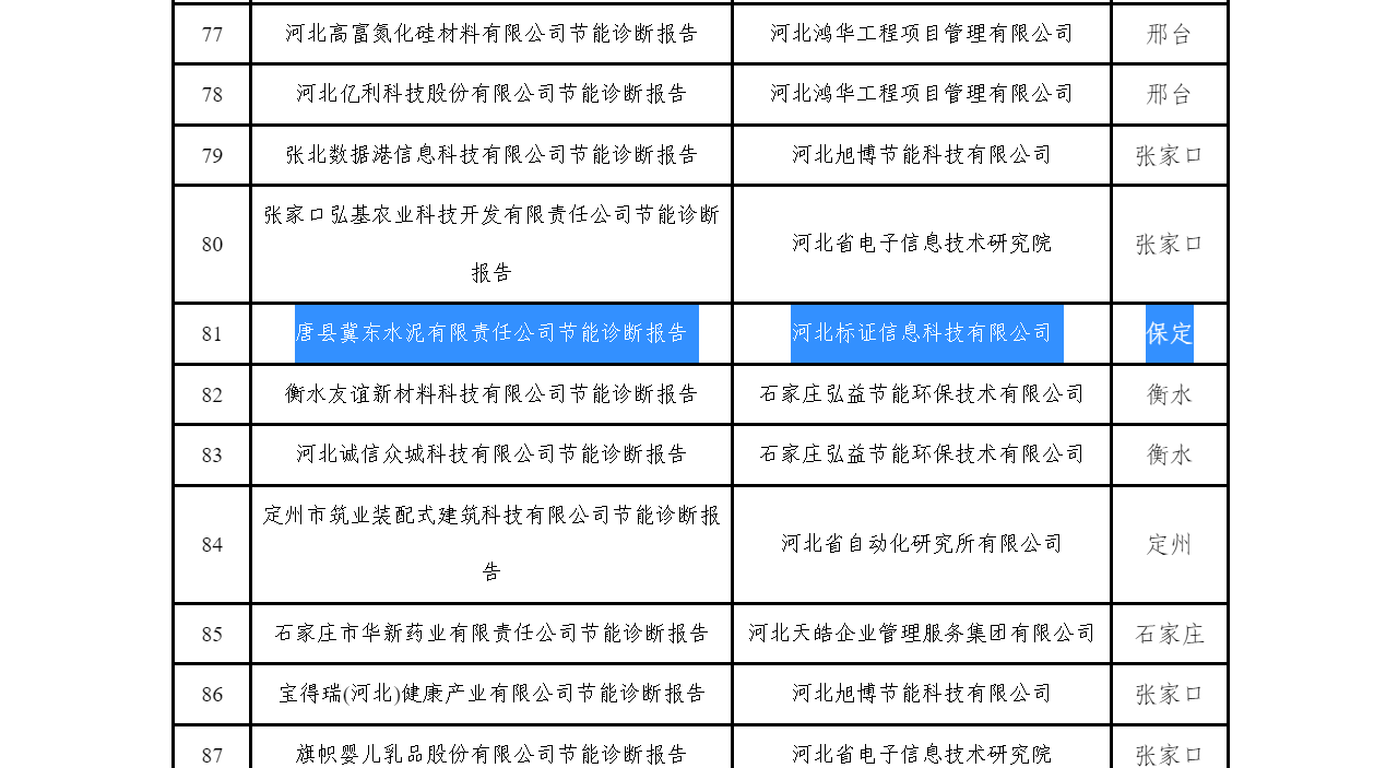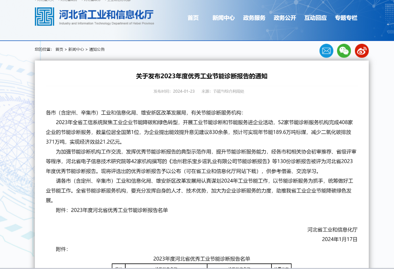 | 188滚球专家 冀东水泥有限责任公司节能诊断报告成功入选河北省“2023年度优秀节能诊断报告” |