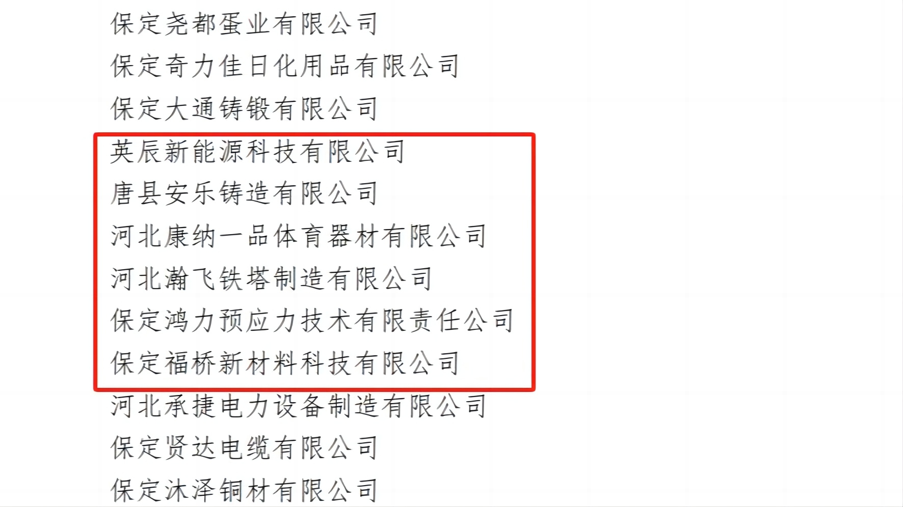 4月9日,河北省工业和信息化厅组织完成了2024年第一批河北省专精特新中小企业认定工作并公布通过评价企业名单,188滚球专家 经济开发区6家企业榜上有名,分别是:英辰新能源科技有限公司、188滚球专家 安乐铸造有限公司、河北康纳一品体育器材有限公司、河北瀚飞铁塔制造有限公司、保定鸿力预应力技术有限责任公司、保定福桥新材料科技有限公司。